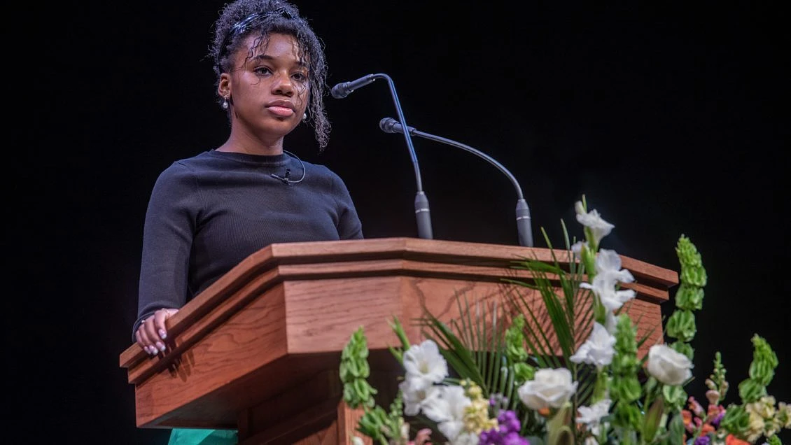Yolanda Renee King, 14, the only grandchild of the Rev. Martin Luther King Jr., took the stage in front of an at times enthusiastic, at times emotional crowd to deliver the keynote speech at Clemson University’s 41st annual Dr. Martin Luther King Jr. Commemorative Keynote Program in the Brooks Center for the Performing Arts on January 17.